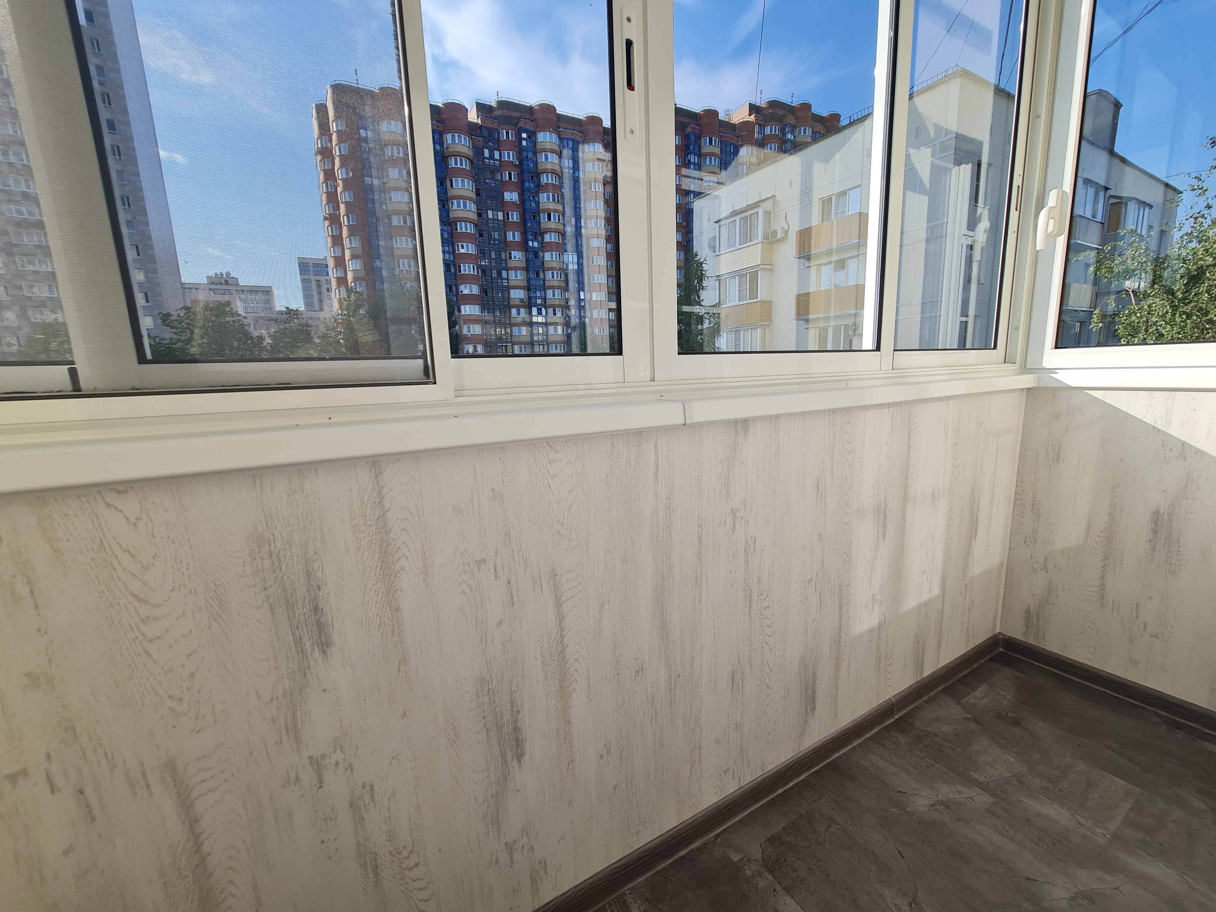 Заказал остекление балкона в девятиэтажки. Поставили алюминиевое остекление раздвижное в по бокам два распашных окна. Затем приехал другой их мастер и положил на пол фанеру и кварц винил. Стены и потолок обшил сайдингом. Весь балкон за два дня. Очень хорошо. Спасибо Оконному континенту, замерщику Дмитрию и всем мастерам.