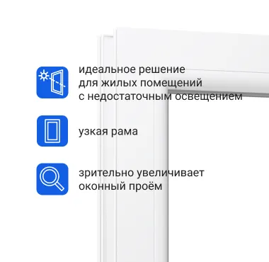 У этой системы самая узкая рама, за счет чего оконный проём зрительно кажется больше.